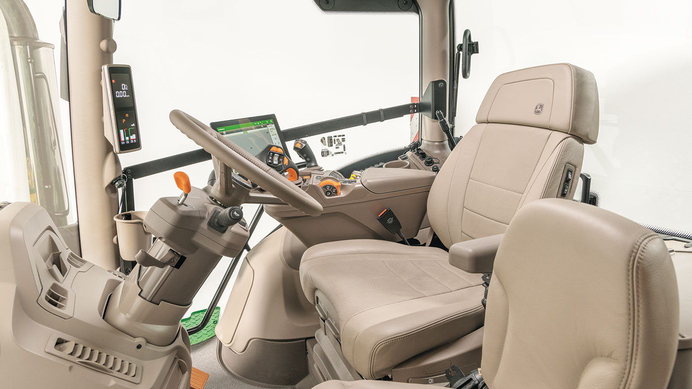 - XXL ComfortView™ førerhus (3,33 m³) med 2 panoramadøre eller B-stolpe i venstre side samt G5/G5PLUS skærm med 71 dB(A)