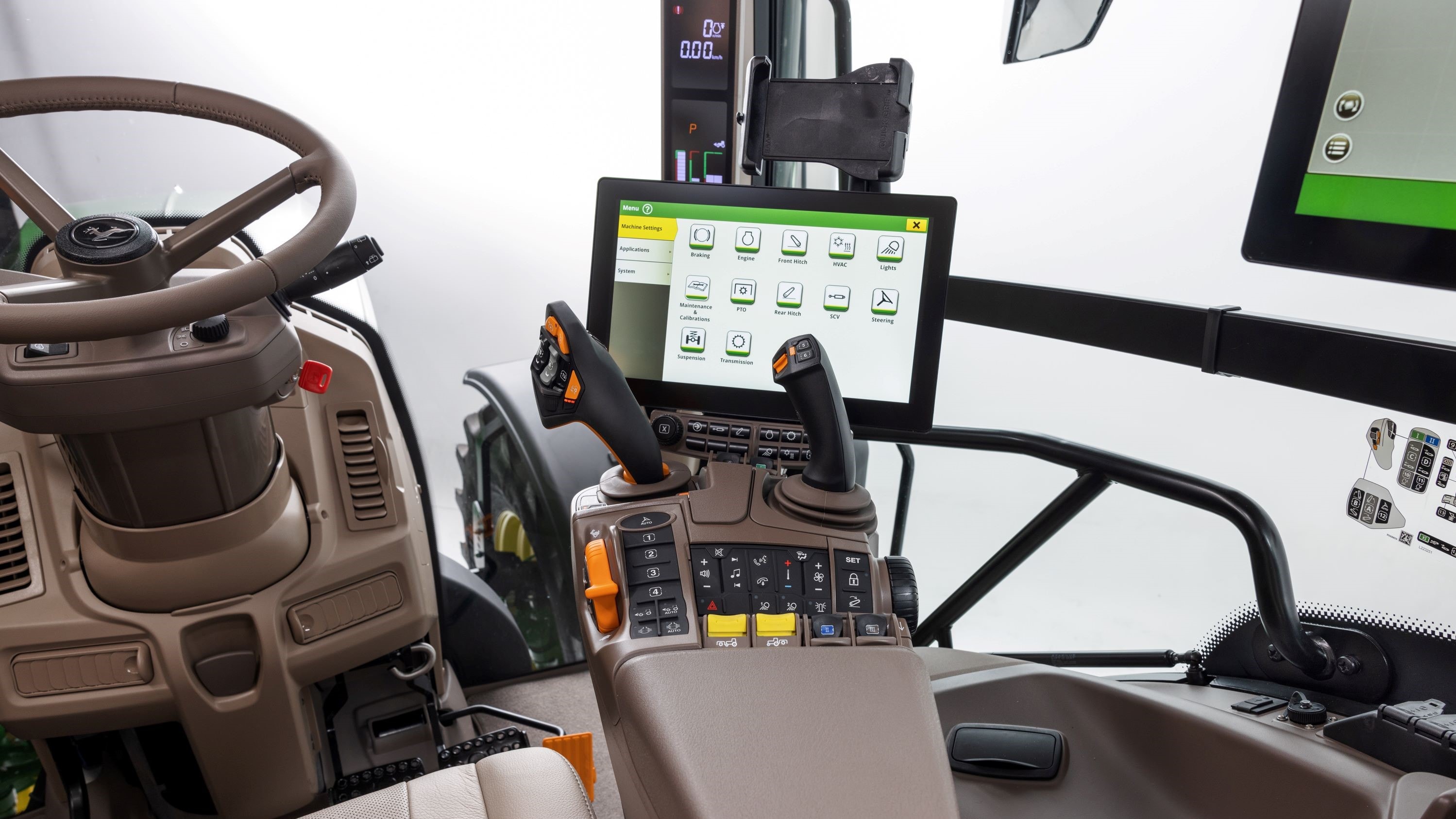 Med sine traktorer modelår 2024 løfter John Deere landbruget til nye højder: Den nye G5 CommandCenterTM skærm integreres nu løbende i alle traktorer i 6-, 7-, 8- og 9-serierne, samtidig med at kørekomforten bliver endnu bedre.
